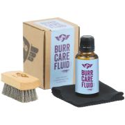 1 x Glass bottle with 30 ml Burr Care Fluid (ADDINOL White Oil WX32) 1 x Soft cotton cloth (natural cotton, black) 1 x Brush #5 (natural wood, stainless steel bristles) L 5.9 x W 2.9 x H 2.0 cm
