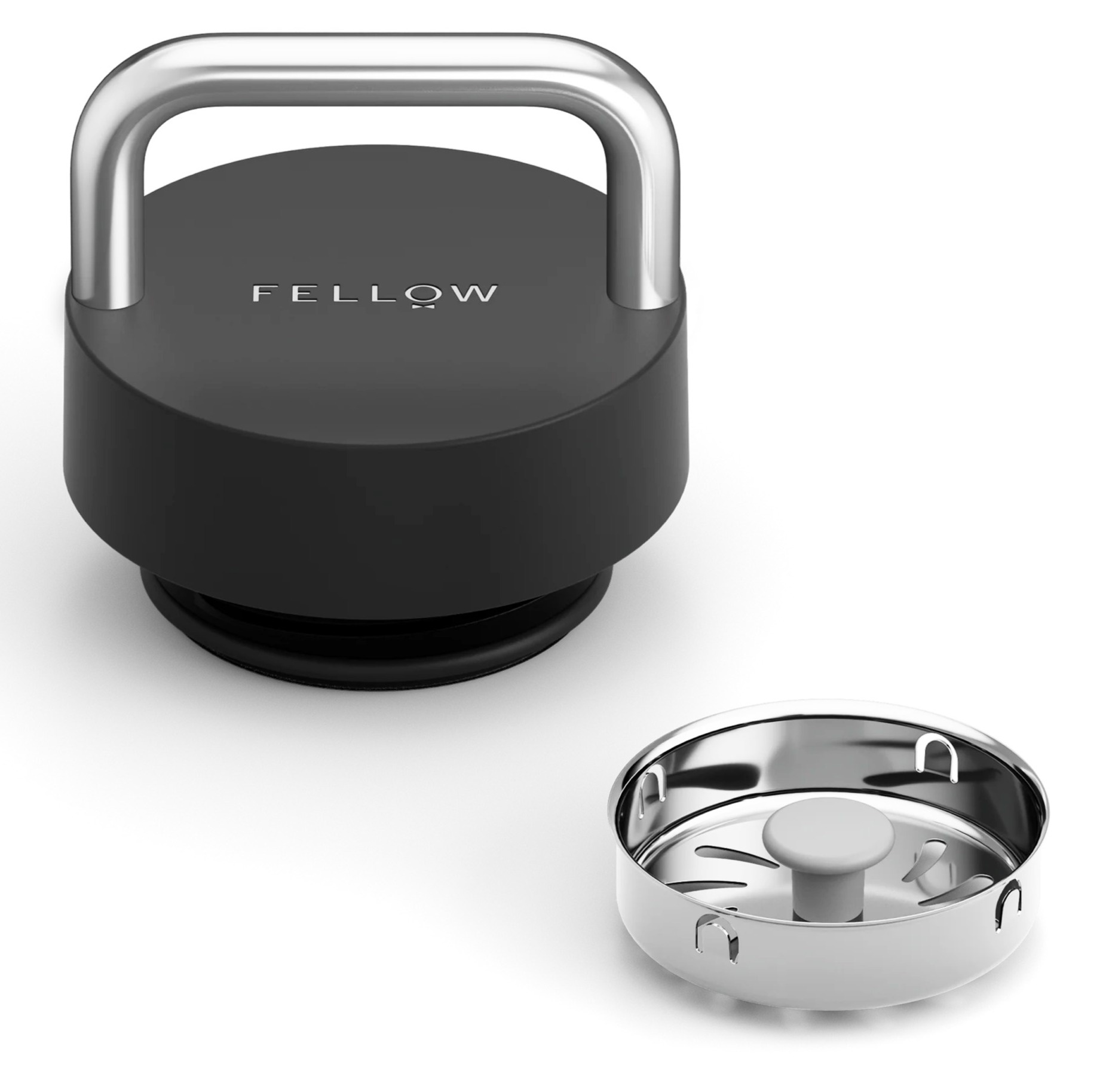 The leak-proof Fellow Carter Carry Lid features a premium metal handle for easy carrying and includes a snap-in splash guard.