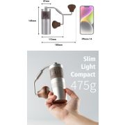 Q on pienin ja kevyin kahvimylly 1Zpresso-tuotevalikoimassa - erinomainen valinta aloittelijalle. Q-myllyssä on kestävät heptagonaaliset terät ja se sopii täydellisesti AeroPress-kahvinkeittimen männän sisään.
