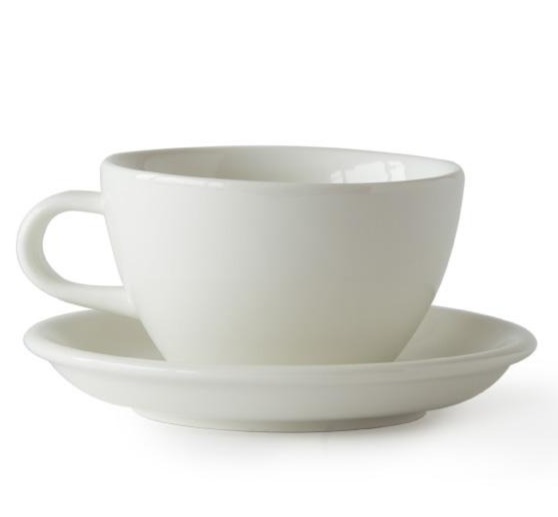 Acme Large Latte kuppi 280 ml + lautanen 15 cm, Milk White
