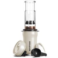 AeroPress Go Plus on yksi maailman pienimmistä kahvinkeittimistä, joka mahtuu kätevästi mukana tulevan termosmukin sisään.