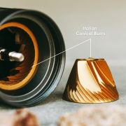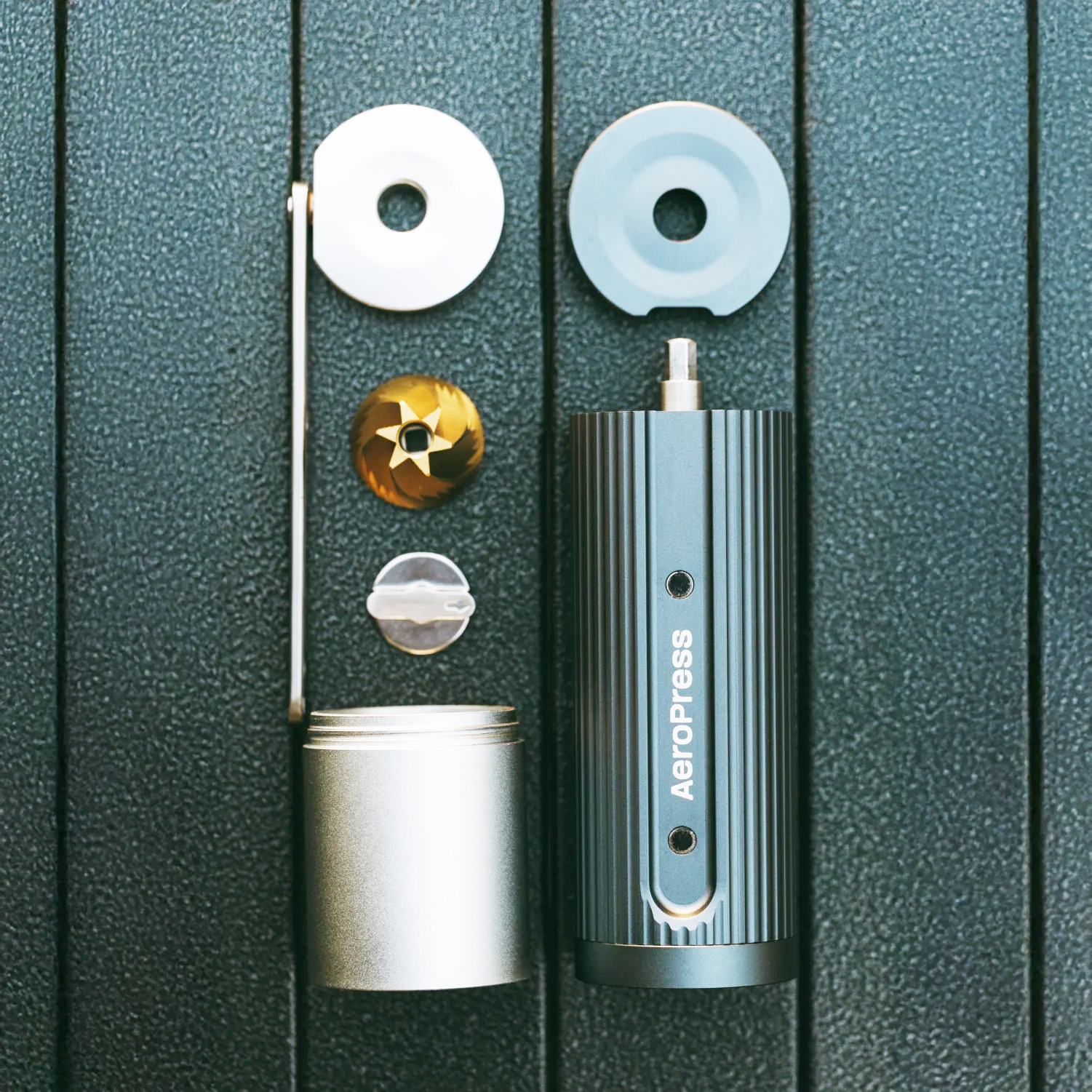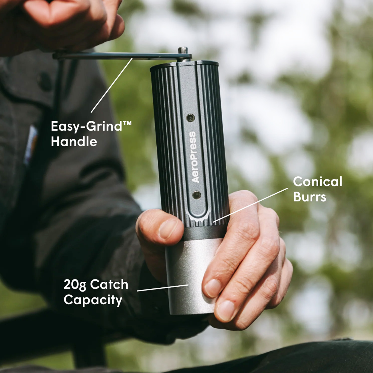 - Kompakti käsikäyttöinen mylly ultrakapealla profiililla - mahtuu siististi AeroPressin männän sisään.