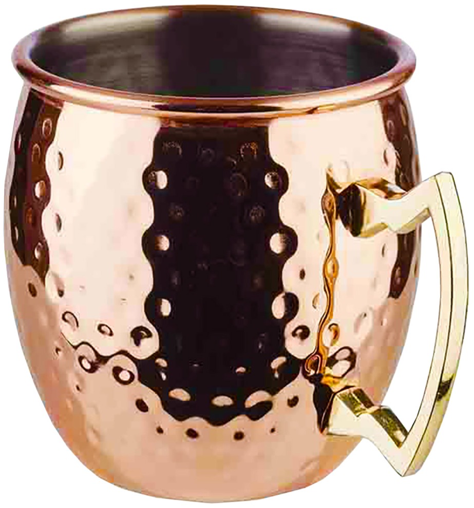 Perinteinen Moscow Mule -muki, joka on valmistettu tyylikkäästi taotusta ja kuparoidusta, ruostumattomasta teräksestä.