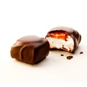 Barú:n herkullinen vaahtokarkki belgialaisella tummalla suklaalla kuorrutettuna. Sisällä kotitekoista suolakinuskia. Vaahtokarkit sisältävät aitoa bourbonvaniljaa ja hunajaa.