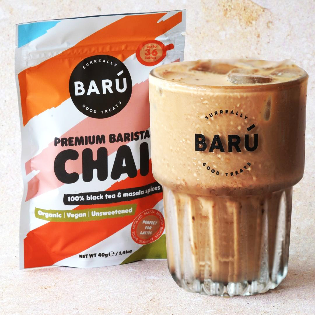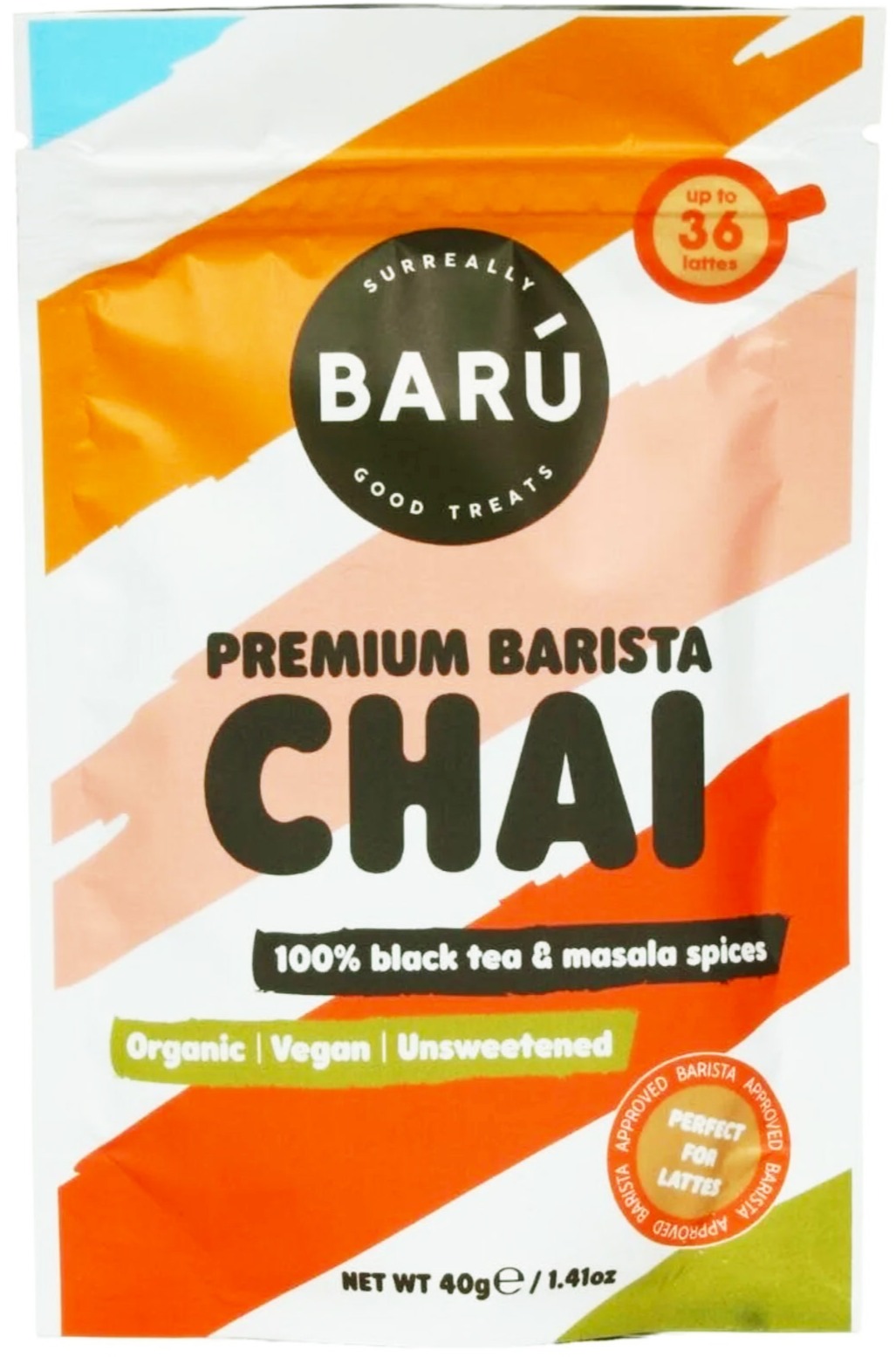 Barú Premium Barista Chai – chai latte -sekoitus, joka on valmistettu mustasta teestä ja perinteisistä masala-mausteista, kuten kanelista, inkivääristä ja kardemummasta. Valmistettu 100 % luomuraaka-aineista ilman lisättyä sokeria.
