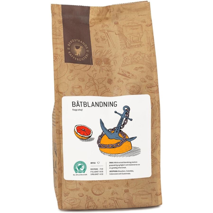 Bergstrands kahvipaahtimon Båtblandning (Venesekoitus) -kahvissa on greippimäistä hapokkuutta, jota tasapainottavat täyteläisyys ja kermainen jälkimaku. Kahvi valmistettiin ensimmäistä kertaa pressopannussa veneretkellä Marstrandsfjordenilla. Ystävykset huudahtivat yhteen ääneen kesken retken: Tämä on parasta kahvia, jota olemme koskaan maistaneet! Hieman myöhemmin illalla, turvallisesti laituriin kiinnitettynä, kahvi tarjoiltiin kolmen ruokalajin aterian jälkeen Marstrandin majatalossa.