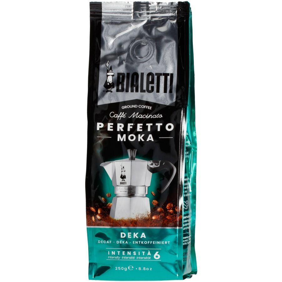 Bialetti Perfetto Moka Deka on italialainen kofeiiniton tummapaahtoinen espressokahvi. 40 % Arabicaa, 60 % Robustaa, pääosin brasilialaista kahvipapua. Keskipaahto antaa tälle kahville murojen ja paahdetun leivän aromaattisia vivahteita.
