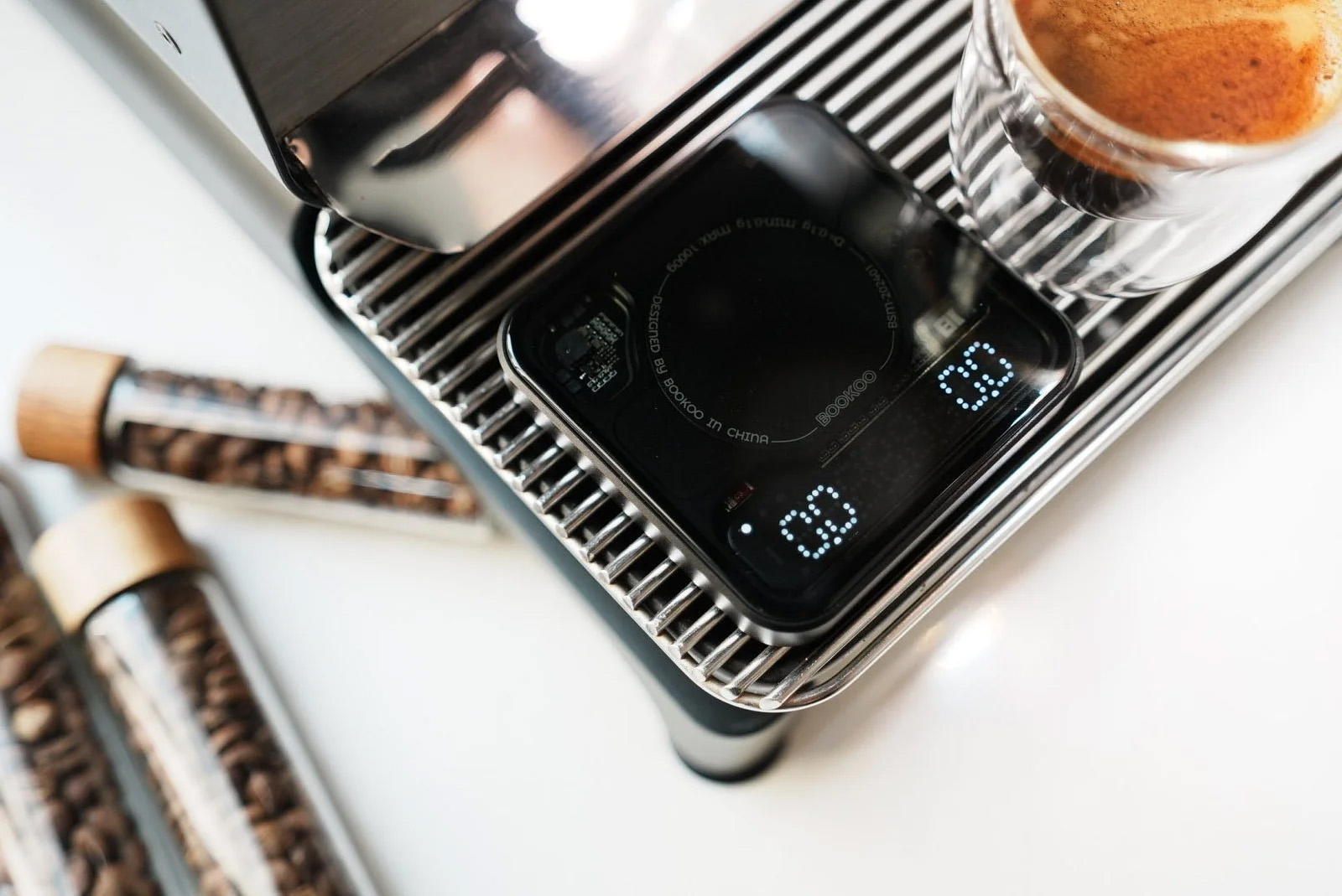 BooKoo Themis Mini Coffee Scale on erinomainen valinta espressoharrastajille, jotka arvostavat tarkkuutta ja tasalaatuisuutta. Vaaka on pieni mutta tehokas ja sopii täydellisesti espressokoneen tippakaukalon päälle olematta tiellä.