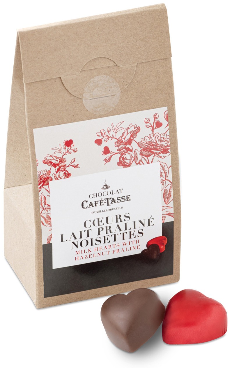 Pakkaus sisältää 10 maitosuklaasydäntä (38 % kaakaota), jotka on täytetty herkullisella hasselpähkinäpraliinilla, jossa on hieno pähkinäinen rapeus.
