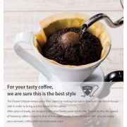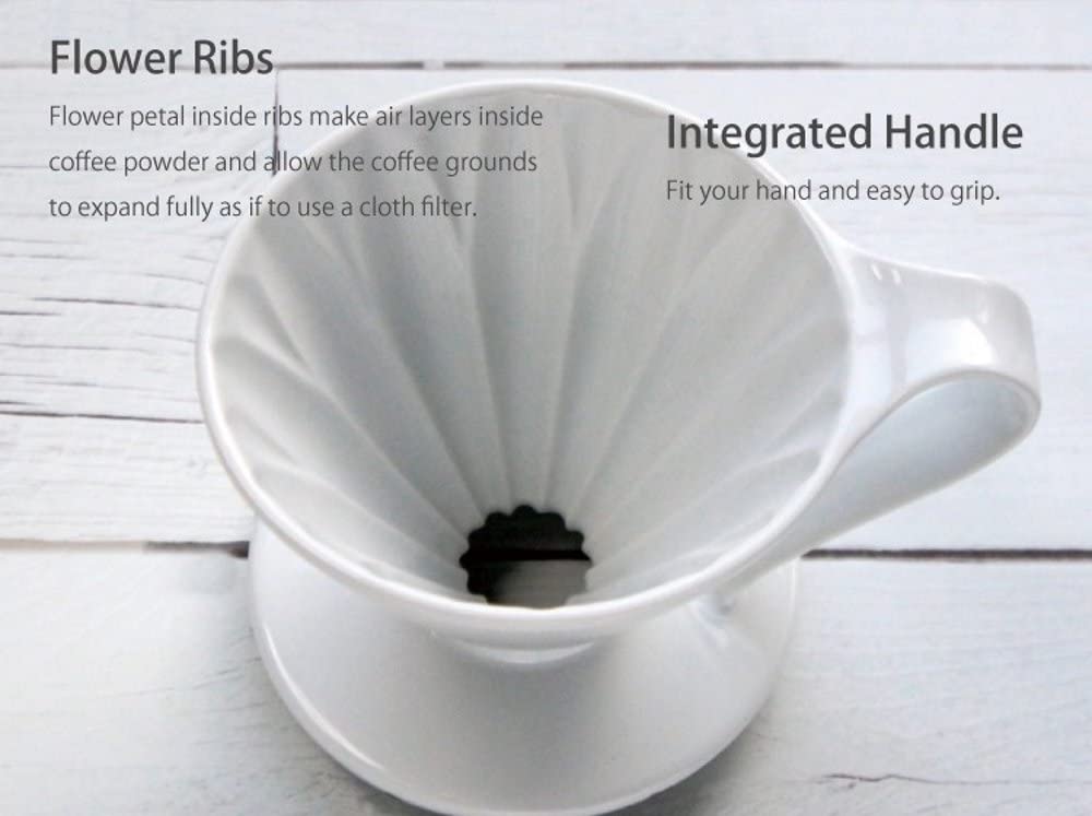 Kartionmuotoinen CAFEC Arita Flower Coffee Dripper-kahvisuodatin muodostaa suodatuskerroksen, joka saa veden kiertämään suppilon sisäpuolella. Ikävien sivumakujen välttämiseksi tarvitaan nopeampi ja tasaisempi vedenvirtaus. Arita Flower-suppilon avulla voit nauttia parhaasta kahvin mausta ilman epämiellyttävää makua.