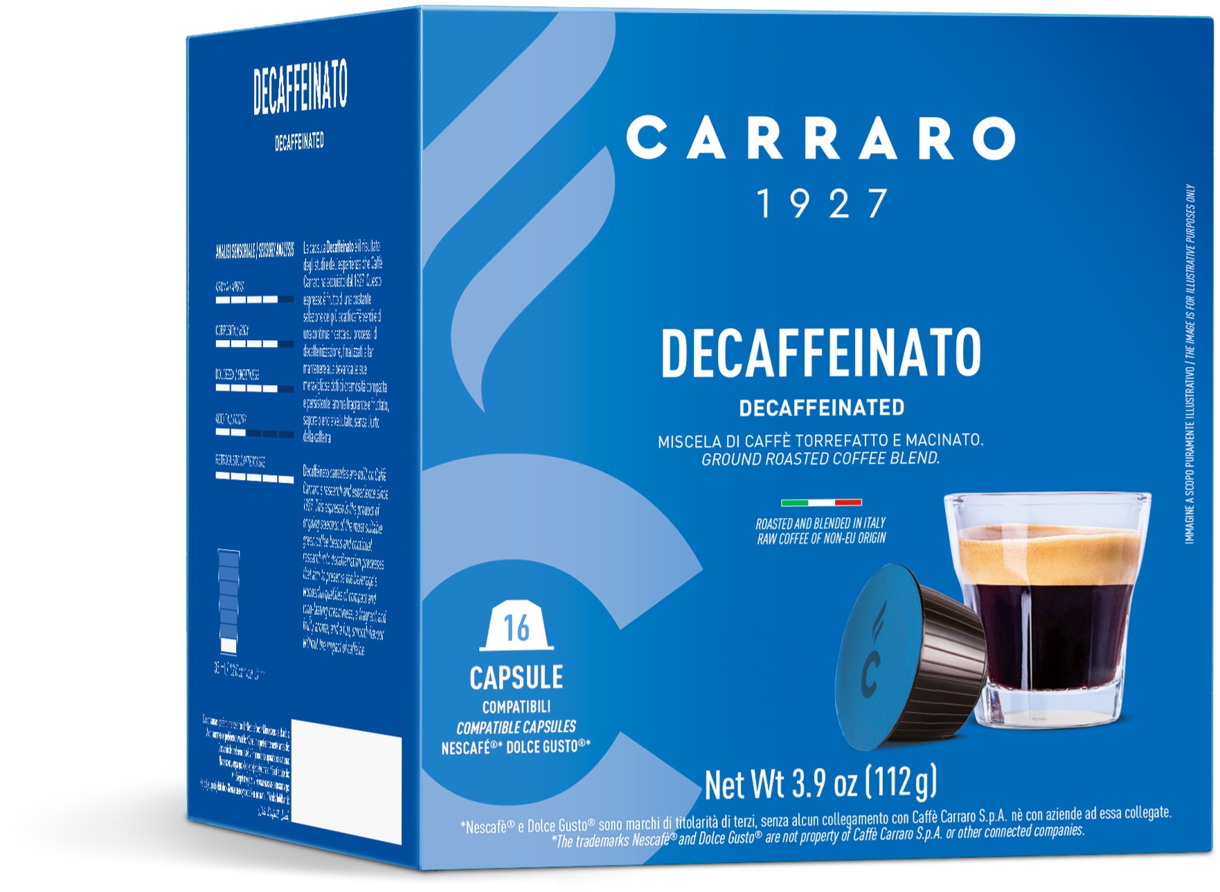 Carraro 1927 Decaffeinato Dolce Gusto®-yhteensopiva kahvikapseli, 16 kpl
