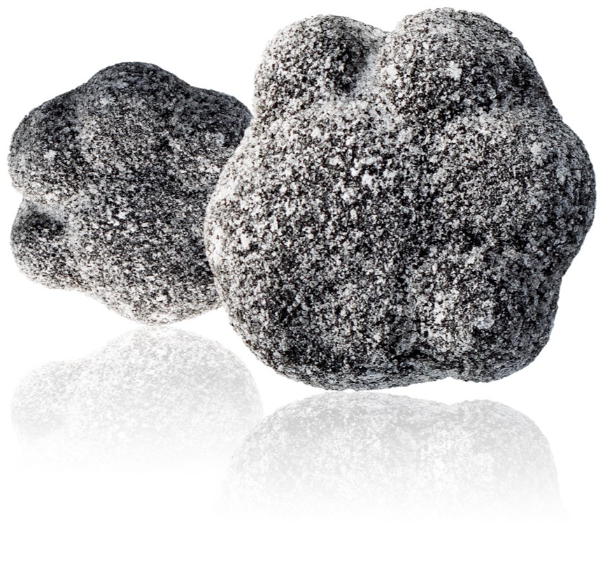 Sokeri, glukoosisiirappi, tärkkelys, muunnettu tärkkelys, ammoniumkloridi (=salmiakki), lakritsiuute, suola, väri (E153), aromit, stabilointiaine (E471).