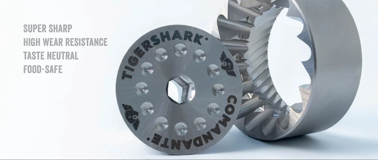 TIGERSHARK® – ainutlaatuinen kaksoishammasterärakenne, jonka innoituksena on tiikerihain purenta. Se leikkaa, viiltää ja murskaa vaikuttavan tehokkaasti.