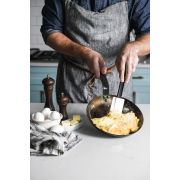 de Buyer Mineral B Element munakaspannussa on pyöristetty reuna, joka on suunniteltu erityisesti munakkaiden kääntämiseen ja lautaselle liu'uttamiseen. Hiiliteräs kestää korkeita lämpötiloja ja karamellisoi nesteen, mikä tekee siitä ihanteellisen materiaalin herkullisten munakkaiden valmistukseen, rapeita ulkopuolelta ja pehmeitä sisäpuolelta.