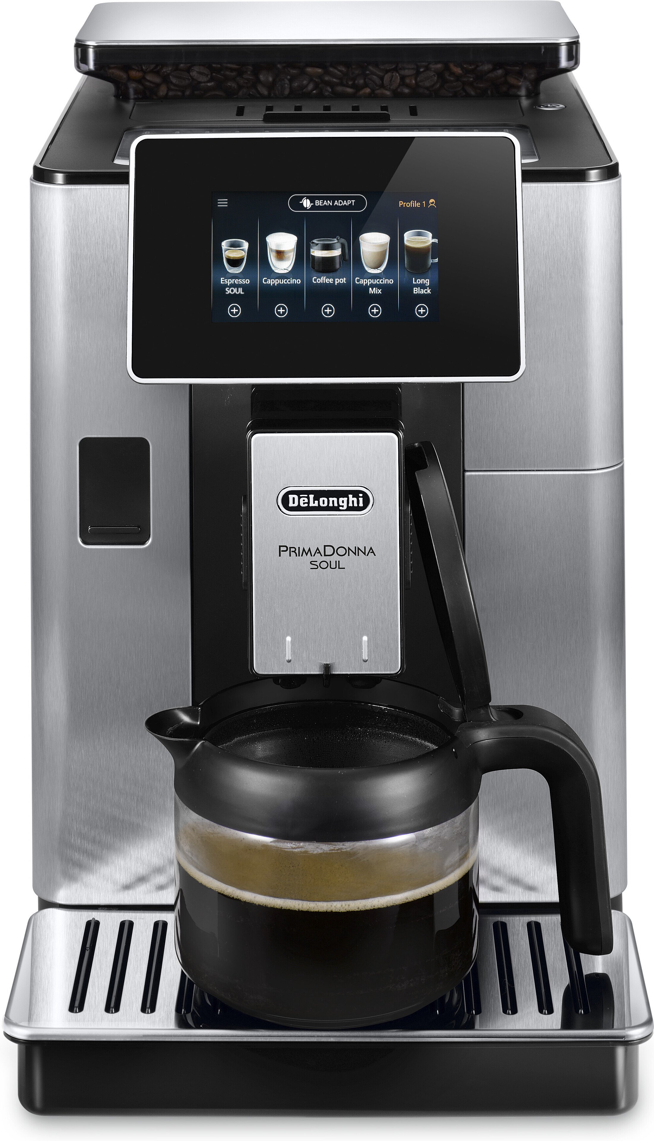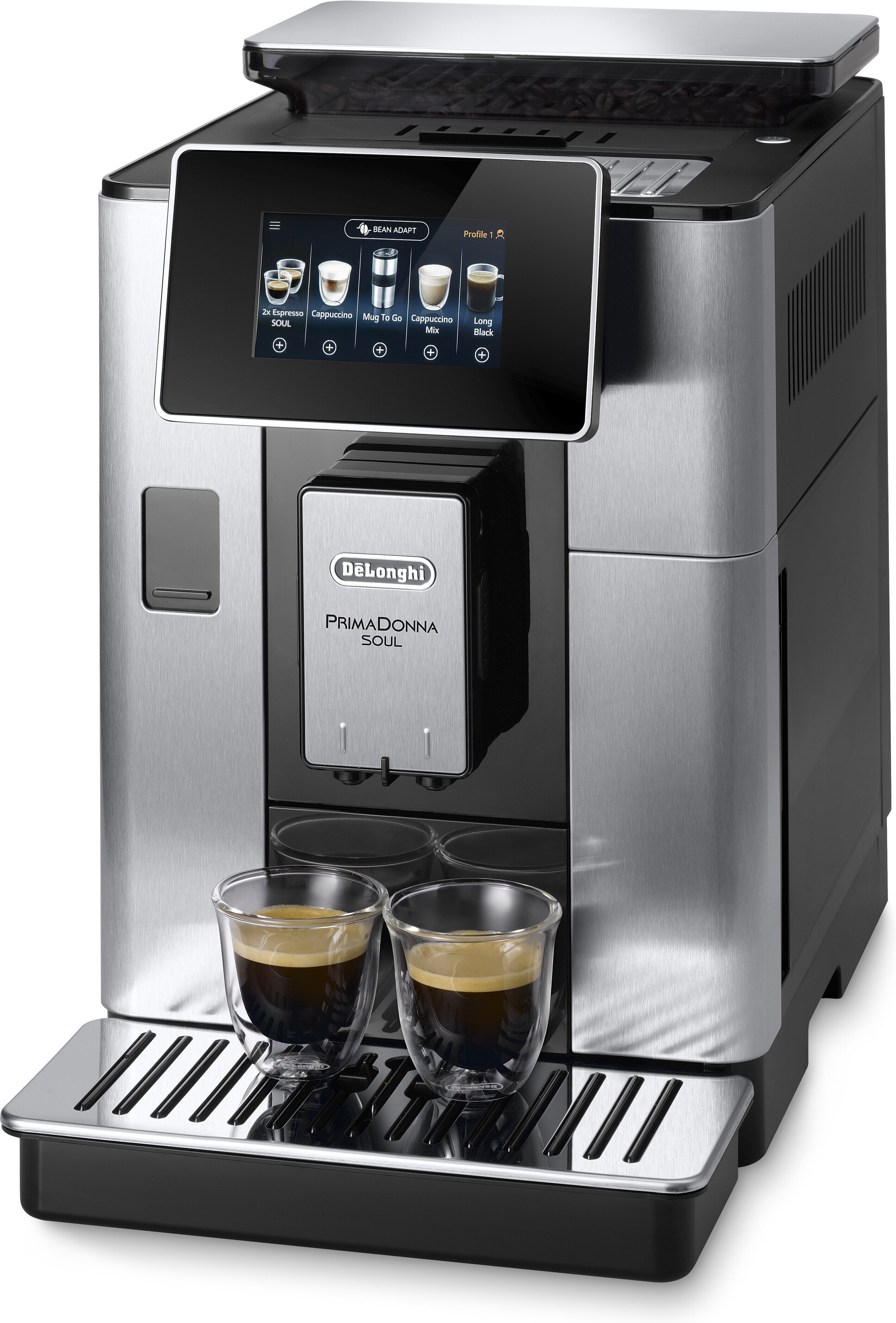 Innovatiivisen Bean Adapt -teknologian ansiosta PrimaDonna Soul huomioi käyttämäsi kahvipapujen ominaisuudet ottaen niistä kaiken irti, tarjoten sinulle täydellisen kupillisen höyryävän kuumaa ja aromikasta kahvia.
