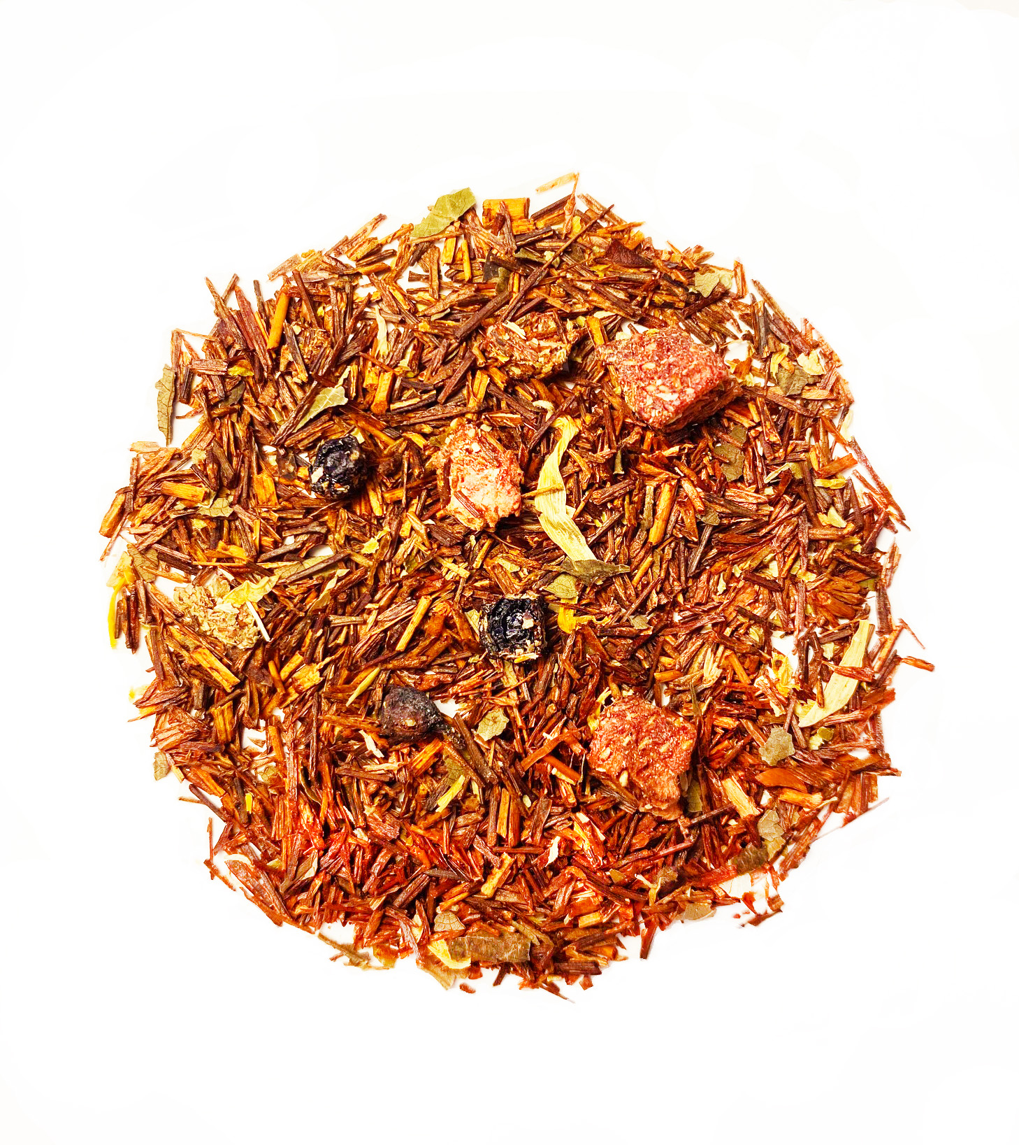- Luomu-rooibos, jossa mustikkaa ja mansikkaa