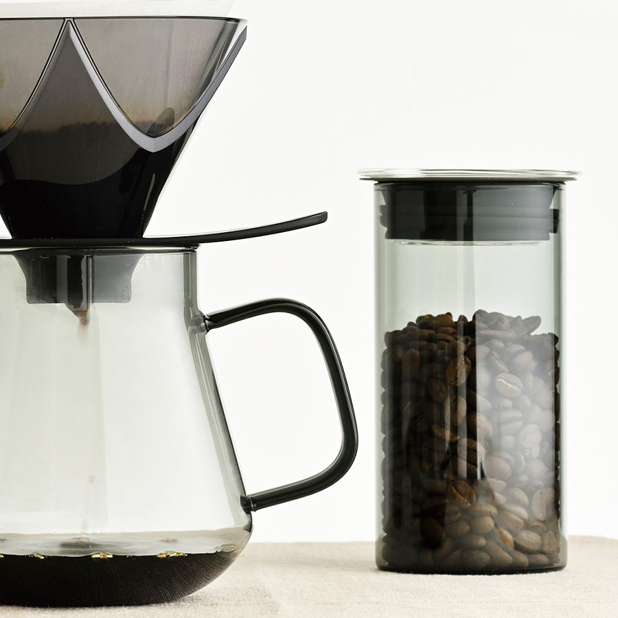 Hario Colors Canister -säilytyspurkit yhdistävät tyylin ja käytännöllisyyden. Läpinäkyvä lasikansi mahdollistaa sisällön helpon tarkastelun ylhäältä päin - täydellistä ainesosien seuraamista varten, erityisesti kun ne säilytetään laatikossa. Purkki on ihanteellinen kahvin, teen tai kuivien elintarvikkeiden säilytykseen.