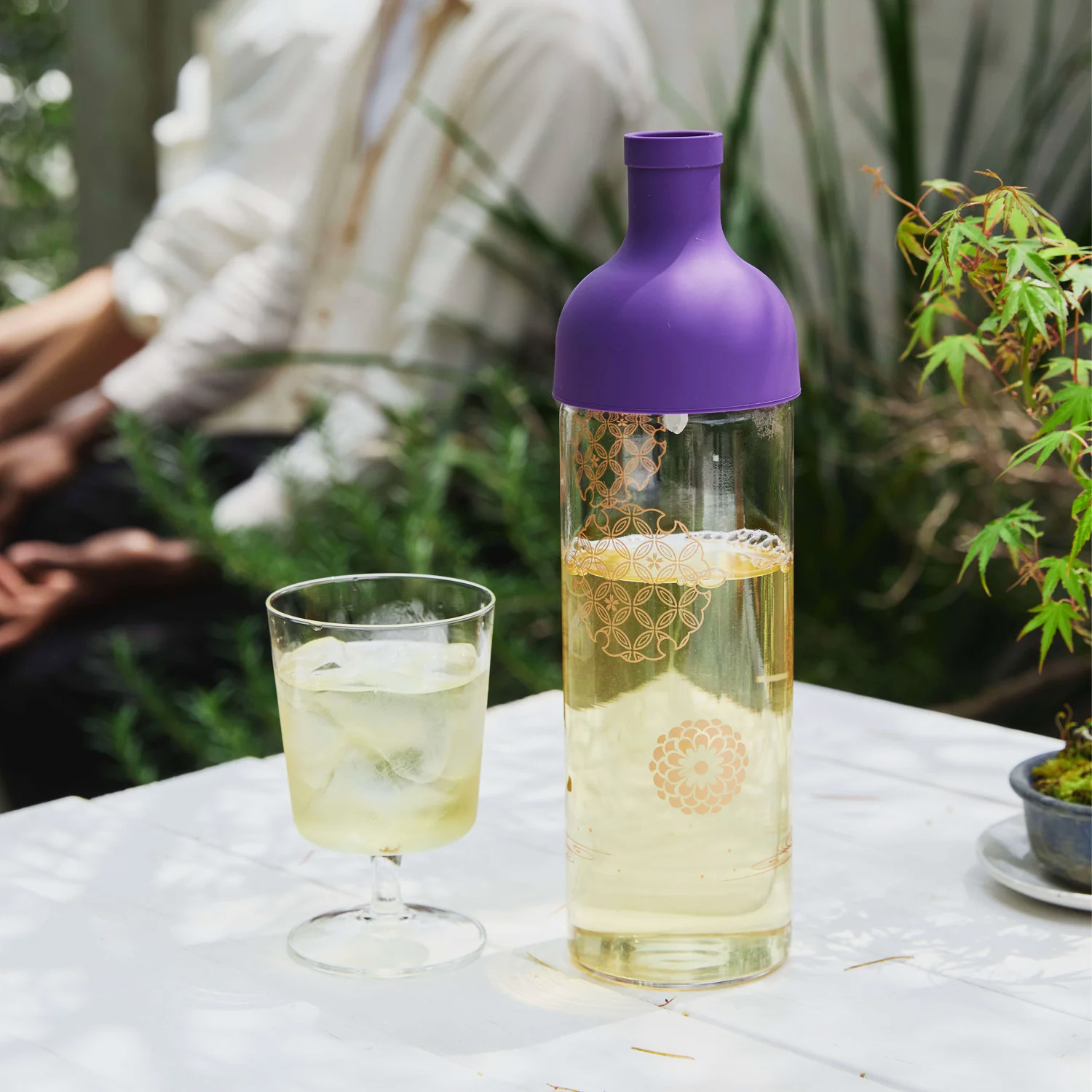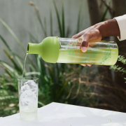 Hario AYA Filter-in -teepullo on viinipullon muotoinen ja sopii erinomaisesti kylmäuutetun teen tarjoiluun. Sisäänrakennettu suodatin mahdollistaa helpon kaatamisen suoraan pullosta.