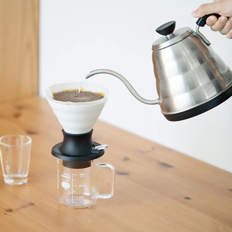 Hario Switch Dripperillä saat aina helposti hyvän lopputuloksen. Perusreseptinä on 20 g keskikarkeudelle jauhettua kahvia, ja 240 g kuumaa vettä, jota haudutetaan 2 minuuttia. Voit toki vapaasti kokeilla eri jauhatusasteita, uuttoaikoja ja kahvin ja veden suhdetta!