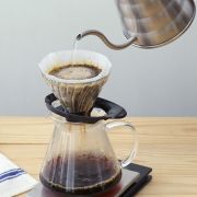 Tällä Hario V60-suodatinsuppilolla on hyvä lämmönkesto-ominaisuus ja se on valmistettu lämmönkestävästä lasista, joka koostuu ainoastaan luonnollisista ainesosista.