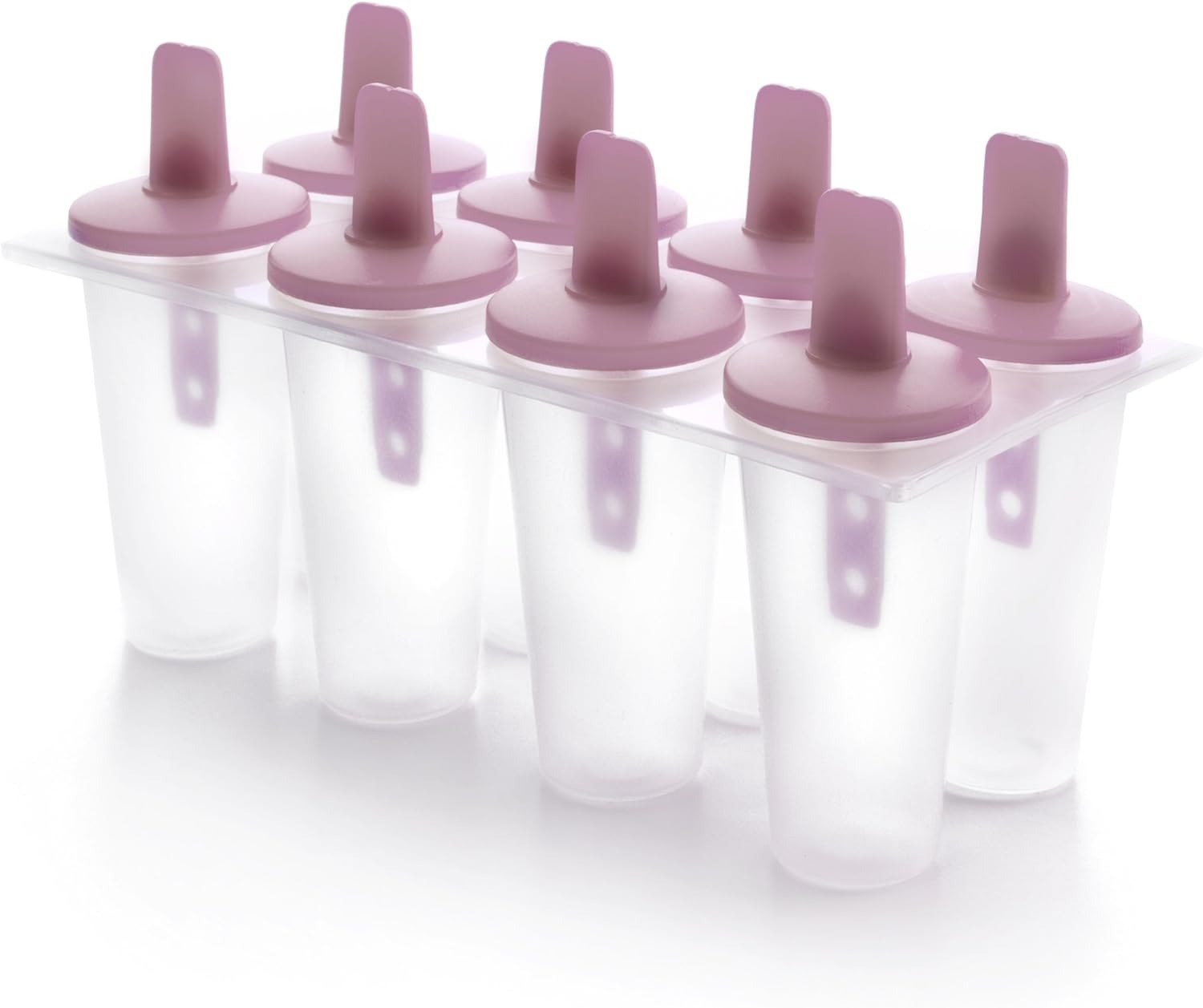 Muovinen mehujääpuikkomuotti, jossa 8 mehujääkantaa / -tikkua.