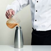 #3Itävaltalainen iSi valmistaa korkealaatuisia, ammattikäyttöön soveltuvia sifoneita. Gourmet Whip sopii sekä kylmien, että lämpimien annosten valmistamiseen. Sifonilla voi siis pursottaa sekä kermavaahdot että kastikkeet. Sifoni käyttää kaasupatruunaa, jolla se paineistetaan. Paineistuksen jälkeen sifonista saa erittäin kuohkeaa ja riittoisaa pursotetta painiketta painamalla.