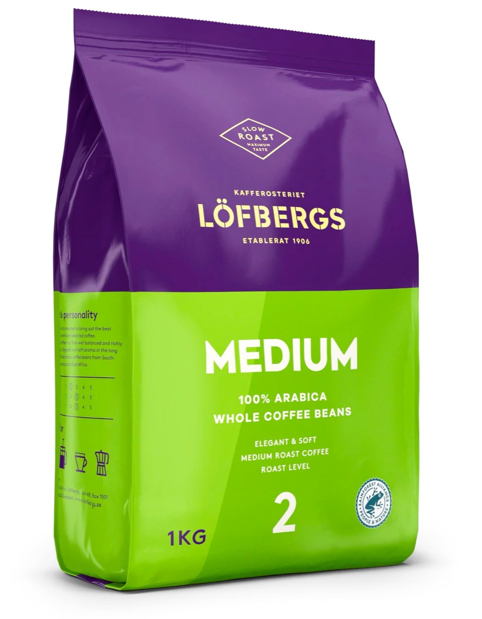 Maukas ja tasapainoinen Löfbergs Medium Roast -kahvi on keskipaahtoinen perinteinen sekoitus.