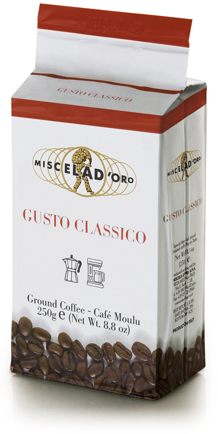 Mutteripannukahvin keittäminen on perinteinen italialainen aamurituaali. Miscela d'Oron Classico 250 g on perinteinen sisilialaisittain tummapaahtoinen sekoitus juuri tätä varten. Pehmeä mutta voimakas kahvi jossa on pitkä miellyttävä jälkimaku, joka polkaisee päivän mukavasti käyntiin. Kahvi on valmiiksi jauhettu mutteripannuun sopivalle karkeudelle. 30 % Arabica ja 70 % Robusta.