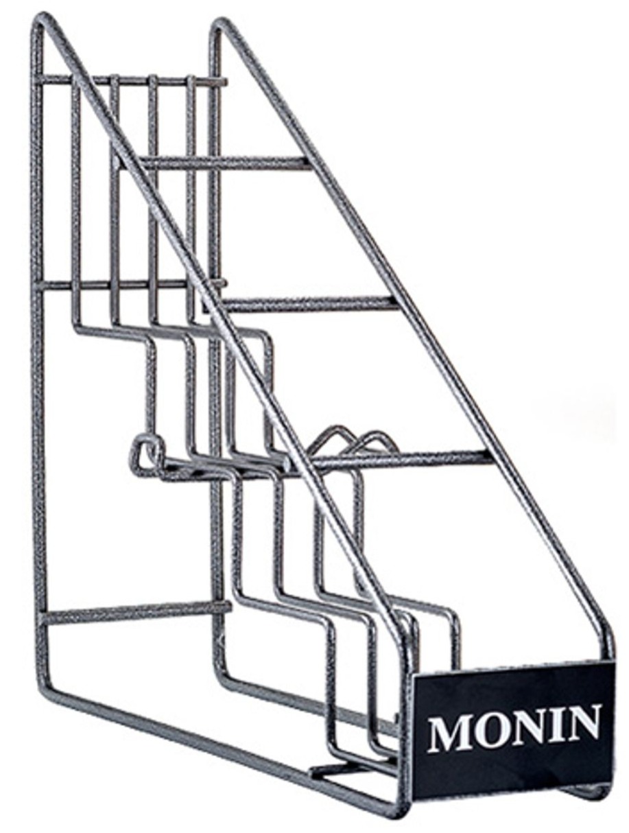 Monin-pullotelineessä voit kätevästi pitää esillä 700 ml ja 1 l Monin-pullojasi niin kahvilassa, ravintolassa, baarissa kuin kotonasi!