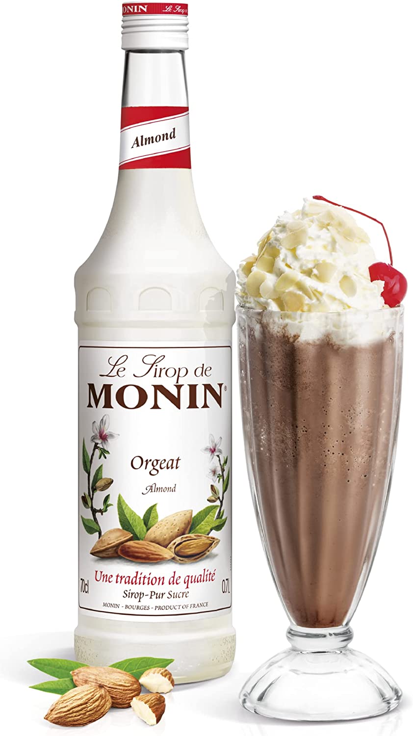 MONIN Almond (Orgeat) makusiirapissa on puhdas, selkeä karvasmantelin tuoksu ja maku. Moninin mantelisiirapin erinomaista makua käytetään monissa klassisissa cocktaileissa ja tiki-juomissa.