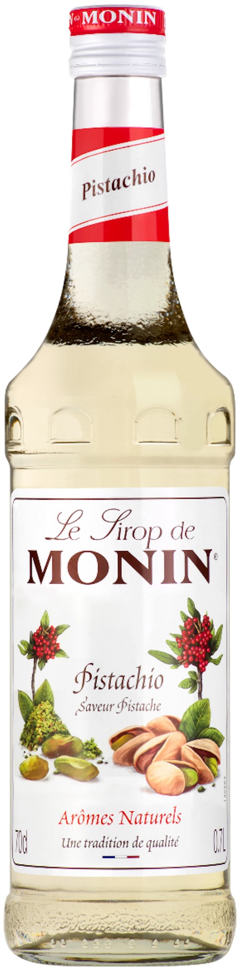 MONIN Pistachio makusiirapissa on herkkä ja makea pistaasin maku, jota käytetään myös suositun pistaasijäätelön valmistukseen. Valmista Monin Pistachio makusiirapilla herkullisia jälkiruokajuomia, pirtelöitä, jäätelöä, kahvijuomia ja kaakaoita, joissa on pistaasipähkinän aito maku.