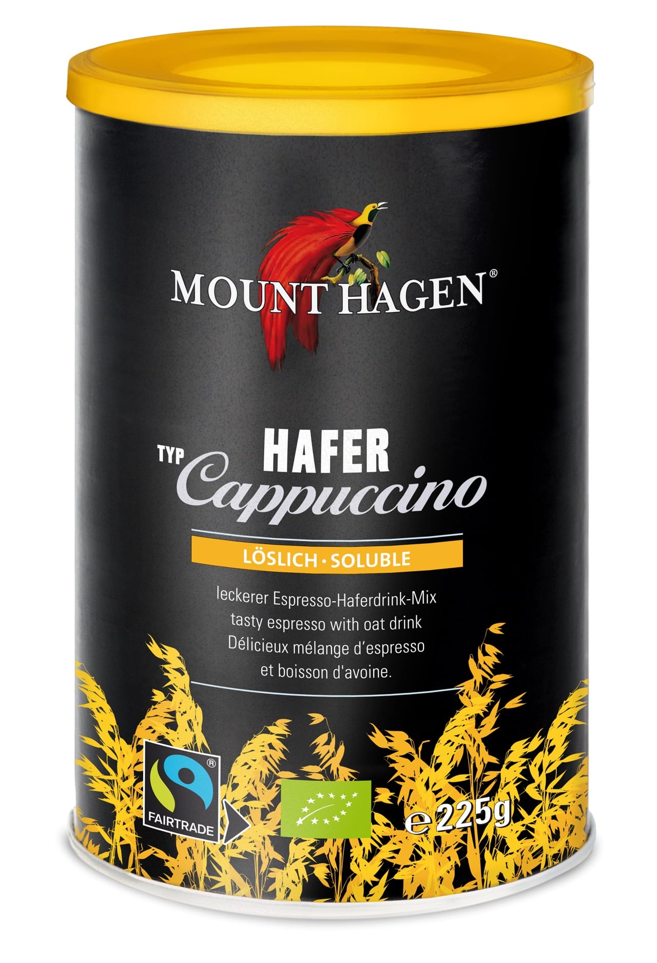 Mount Hagen kauracappuccino on herkku – eikä vain vegaaneille. Maukkaassa luomulaatuisessa Arabica–Robusta-espressossa yhdistyy pehmeä kauramaito, jonka makua pyöristää kevyt karamellimainen raakaruokosokeri. Jos kaipaat nopeaa ja uskomattoman hyvää kauramaitocappuccinoa, tämä juoma ei petä. Täydellinen myös toimistolle, asuntoautoon tai minne tahansa, missä herkullinen cappuccino on tarpeen.