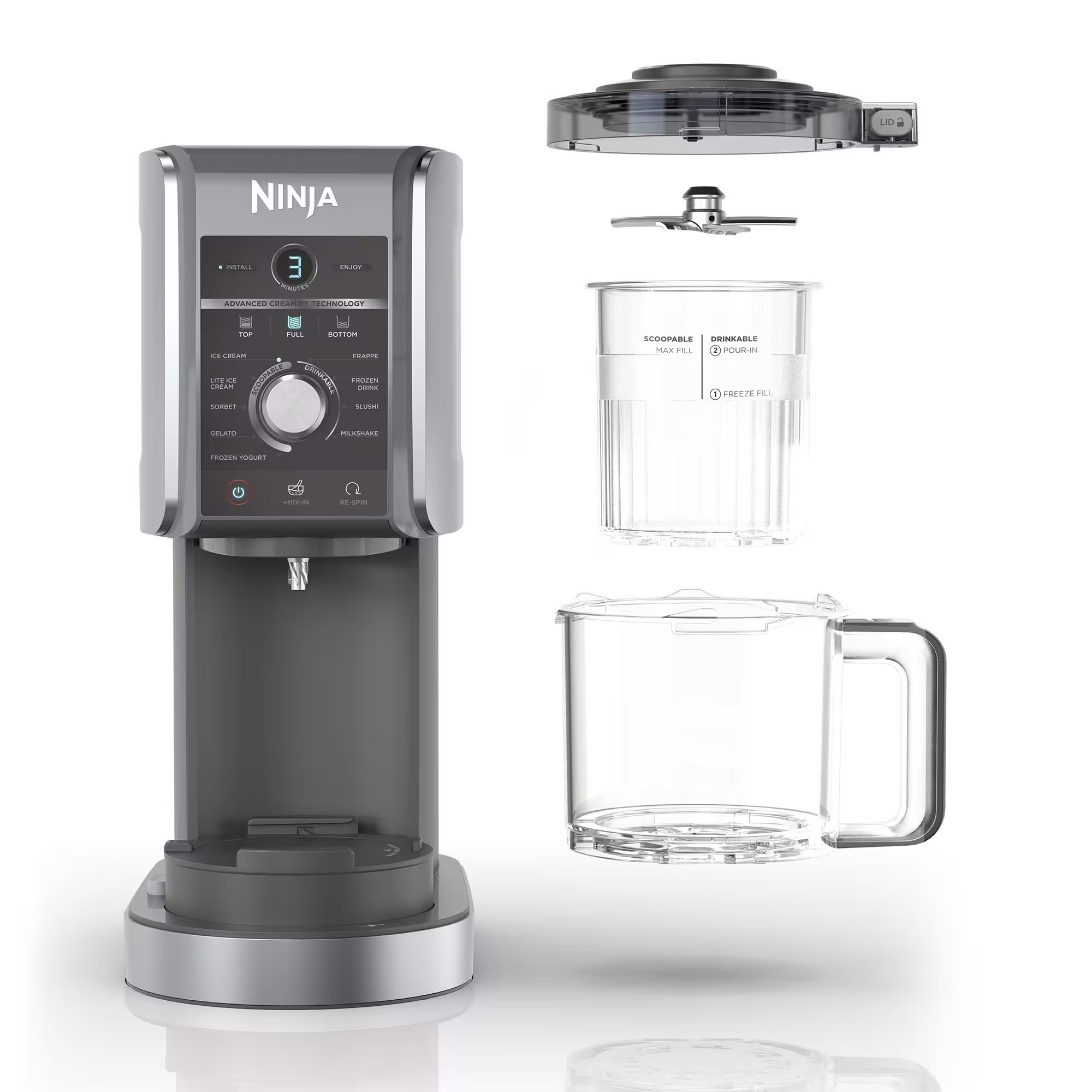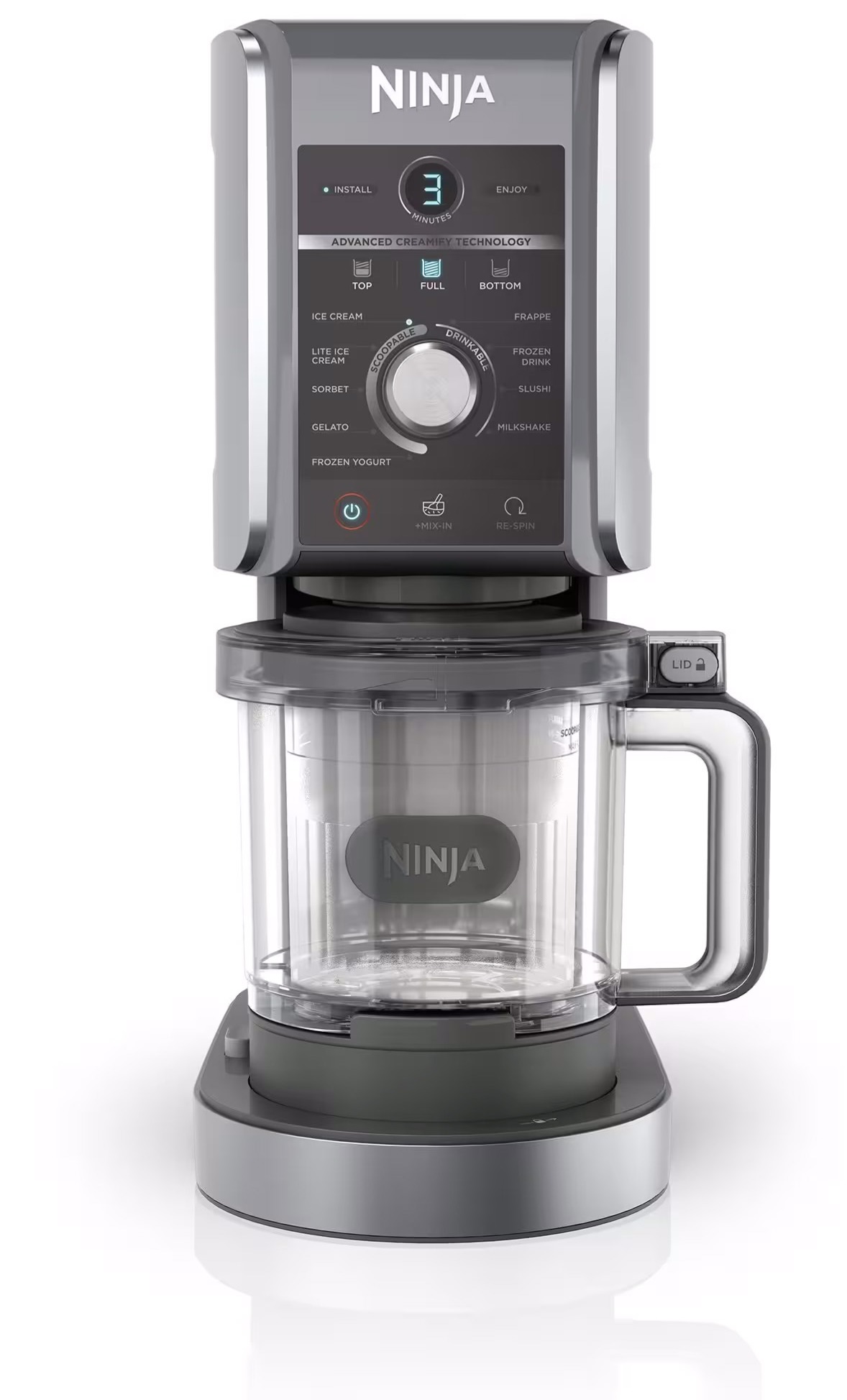 Ninja CREAMi Deluxe -jäätelökoneella valmistat perinteisiä CREAMi-herkkuja. CREAMi Deluxe ei ole pelkkä jäätelökone, vaan siinä on kymmenen eri toimintoa, joiden avulla sillä voi valmistaa kaikkea perinteisestä jäätelöstä ja gelatosta sorbettiin, jäädytettyyn jogurttiin ja pirtelöihin.
