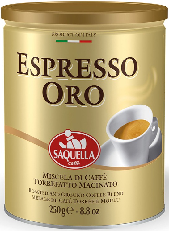 Saquella Espresso Oro on hienostunut kahvisekoitus, jossa on voimakas aromi ja rohkea maku. Parhaita korkealuokkaisia brasilialaisia ja keski-amerikkalaisia Arabica-kahveja, sekoitettuna intialaisen Robustan kanssa.