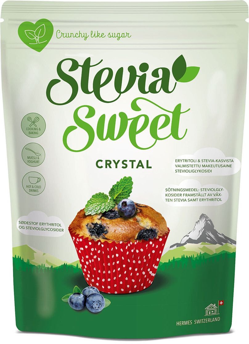 SteviaSweet Crystal on kiteinen makeutusaine ja luonnollinen, sokeria terveellisempi vaihtoehto – täydellinen leivontaan ja kaikenlaiseen makeuttamiseen.