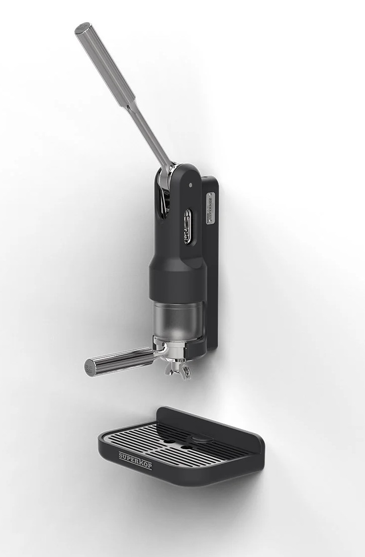 Tällä seinäkiinnityssetillä voit muuntaa erillisen Superkop-espressolaitteen seinään kiinnitettäväksi versioksi.