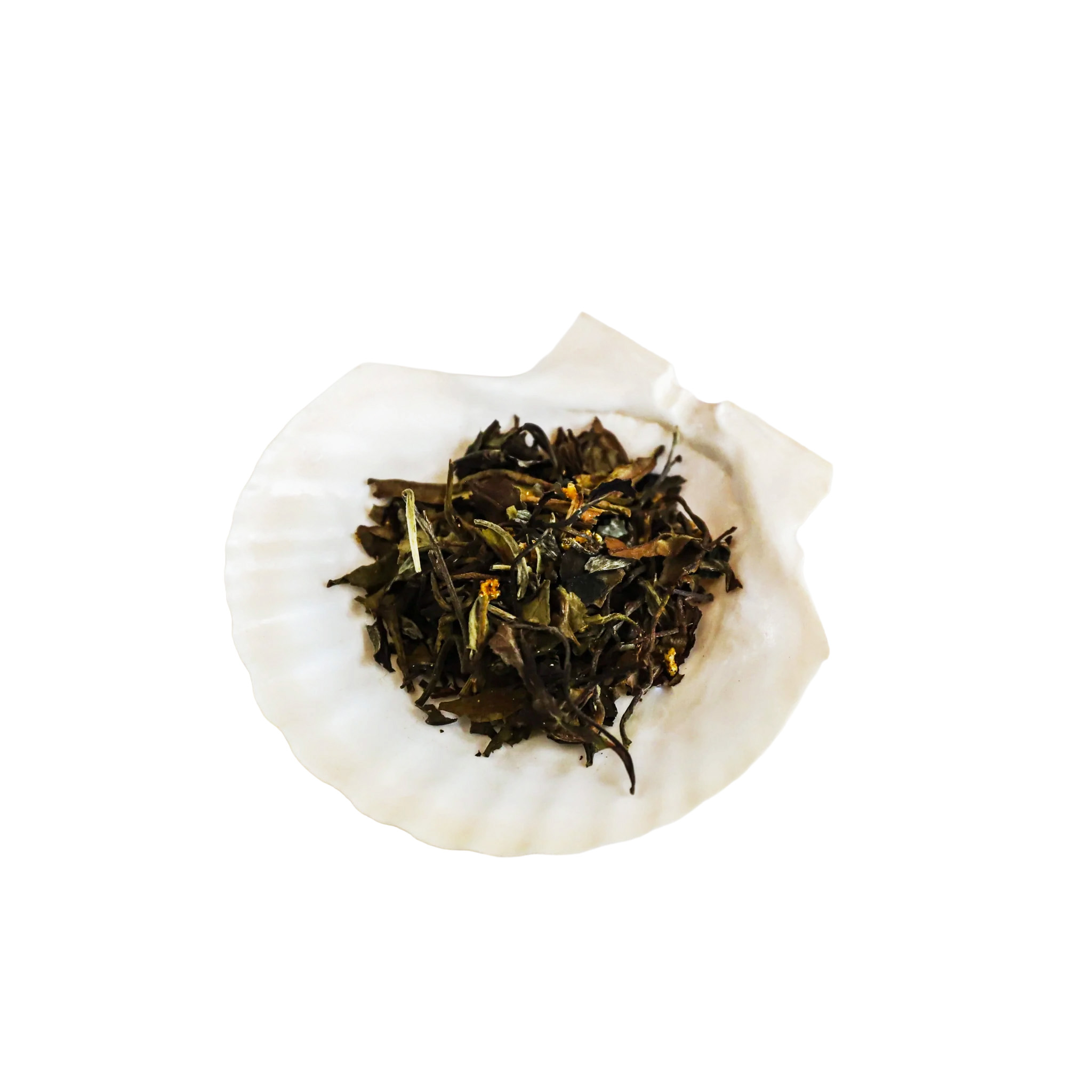 Valkoinen tee (50%), persikka, seljankukka (15%), samppanja-aromi (3%), aromi.