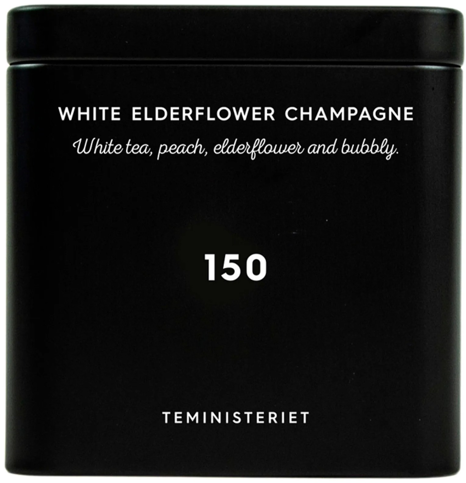 Teministeriet 150 White Elderflower Champagne on sekoitus valkoista teetä, joka on maustettu makealla persikalla, tuoksuvalla seljankukalla ja samppanjalla. Herkät kukkaiset ja hedelmäiset vivahteet tarjoavat miedon ja virkistävän tee-elämyksen.