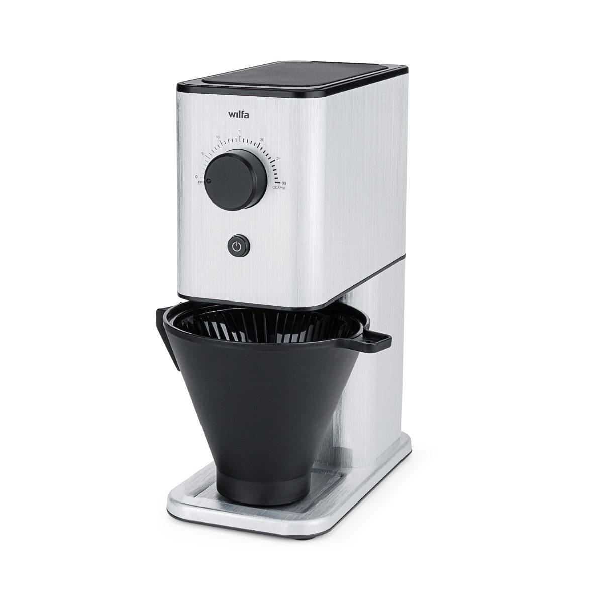 Mylly on yhteensopiva Wilfa Zense -kahvinkeittimen kanssa, joten voit jauhaa kahvin suoraan suodatinsuppiloon. Soveltuu parhaiten tasapohjaisille suodatinsuppiloille, mutta käytettävissä myös muiden mallien kanssa.