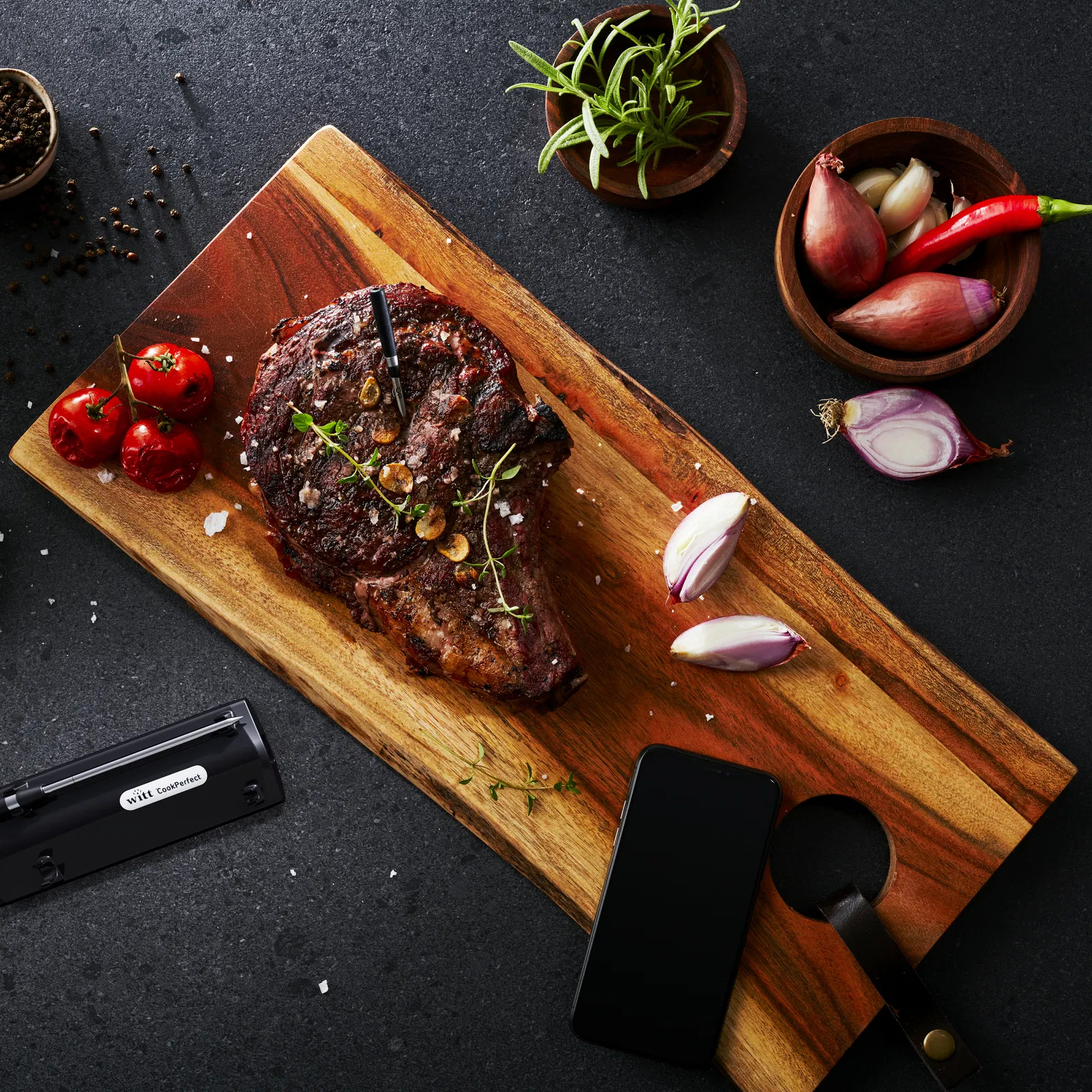 Witt CookPerfect Wireless Dual on edistynyt paistolämpömittari tarkkuusruoanlaittoon. Se mittaa älykkäästi lämpötilan viidestä eri kohdasta lihassa, mikä takaa täydellisesti kypsennetyt tulokset. Langaton muotoilu tarjoaa sekä joustavuutta että mukavuutta keittiössä.