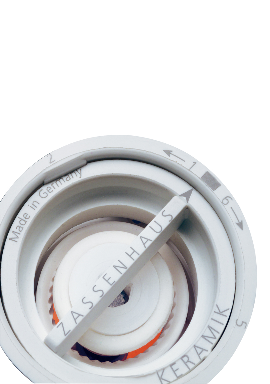 Zassenhaus -myllyt ovat Saksassa valmistettuja ja varustettu portaattomalla säädöllä olevalla keraamisella koneistolla, jonka etu on täydellinen ruostumattomuus, tarkempi hampaistus sekä suuremmat kovuudet verrattuna teräkseen. Myllyt jauhavat sekä suolan että pippurin lisäksi kuivattuja mausteita sekä yrttejä.