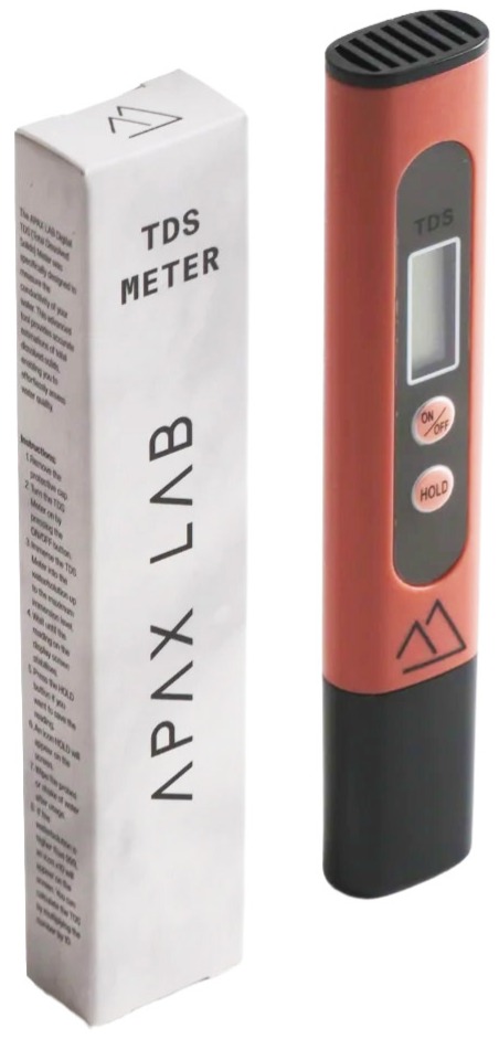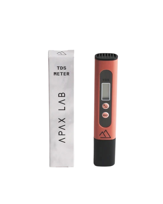 Testa ditt vatten regelbundet med APAX LAB TDS-mätare för jämn smak och korrekt utspädning av APAX LAB-mineralkoncentrat.