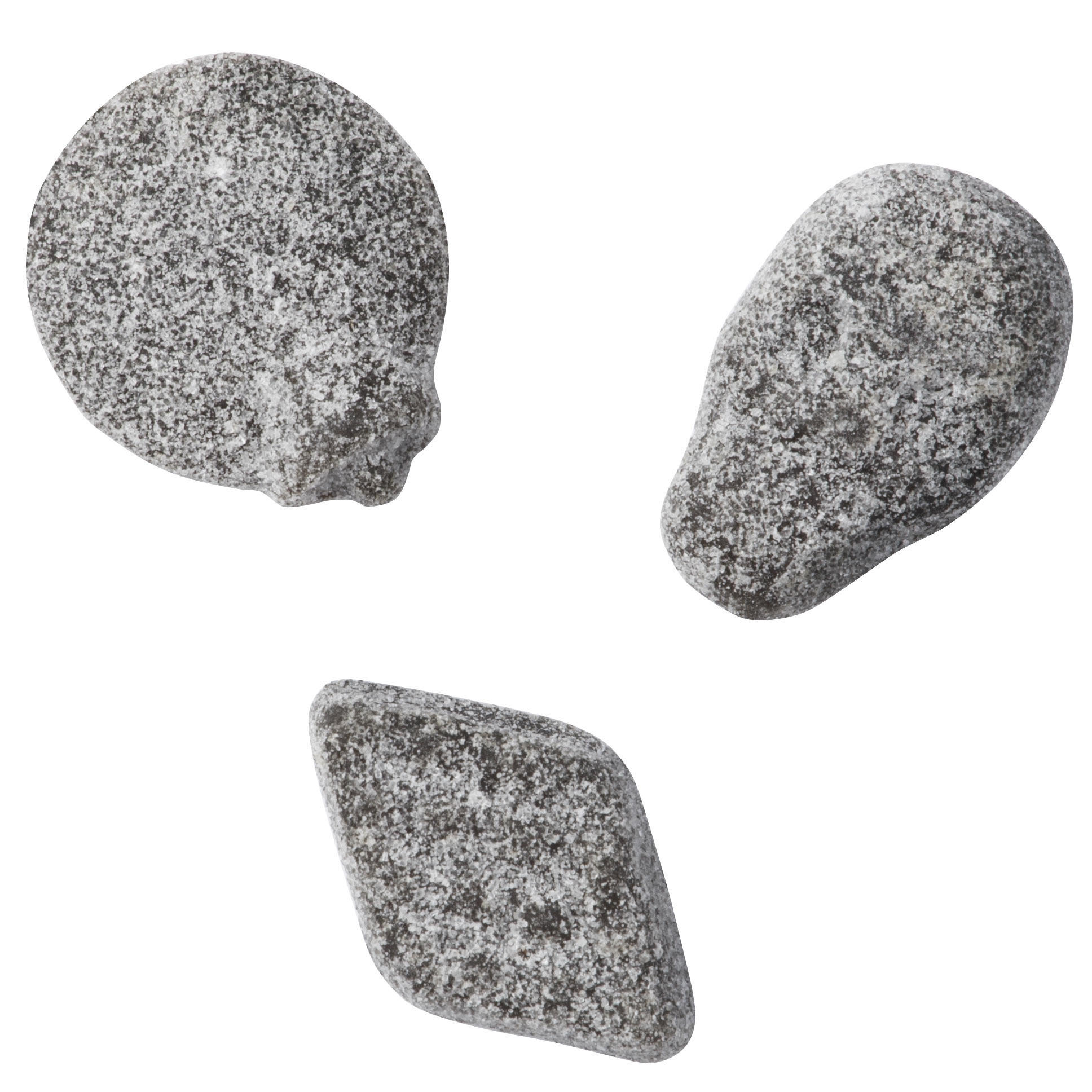 Halva X-Salt -påsen innehåller tre olika typer av salmiak som är täckta med socker: chilibomb, salt dödskalle och mjuka rutor.