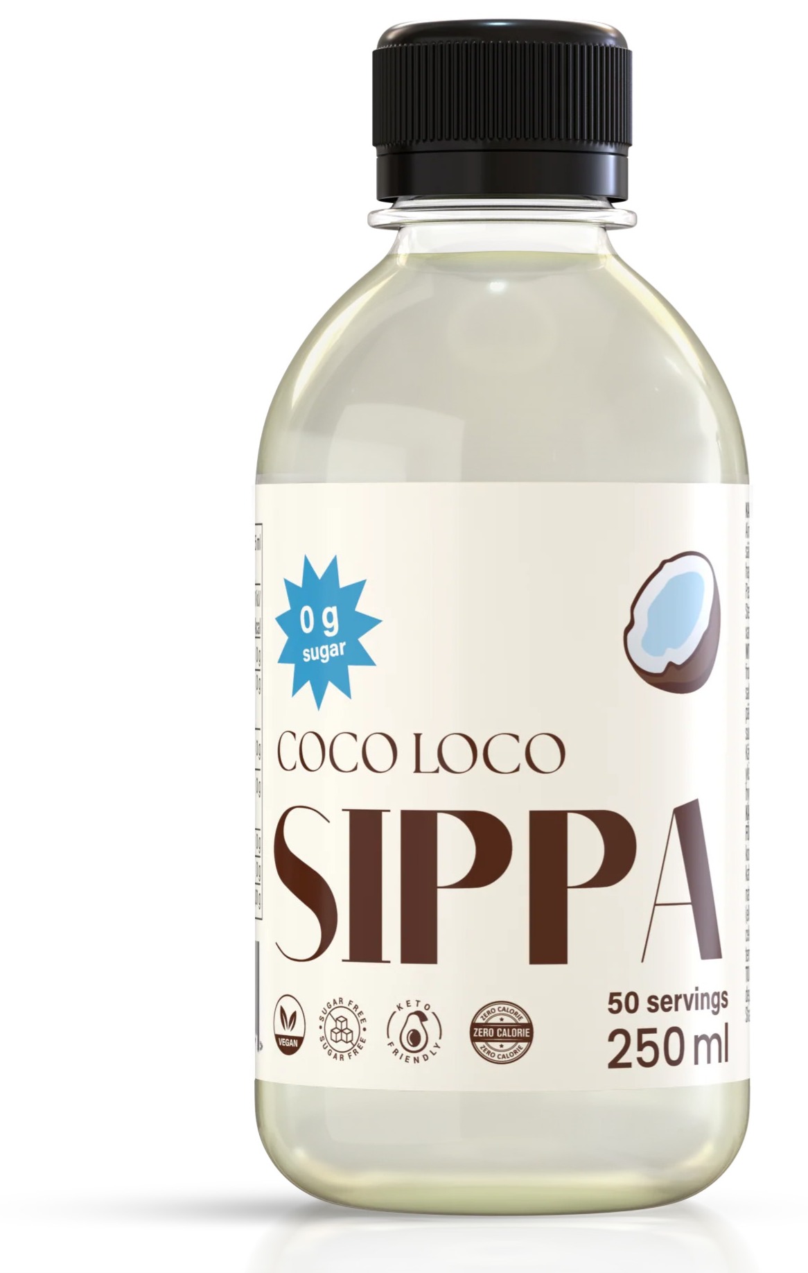 SIPPA Coco Loco smakssirapen tar dig till tropiska landskap. Den fylliga kokossmaken ger en exotisk touch till kaffe, matcha, cocktails och desserter – var som helst där du annars skulle använda socker eller honung.